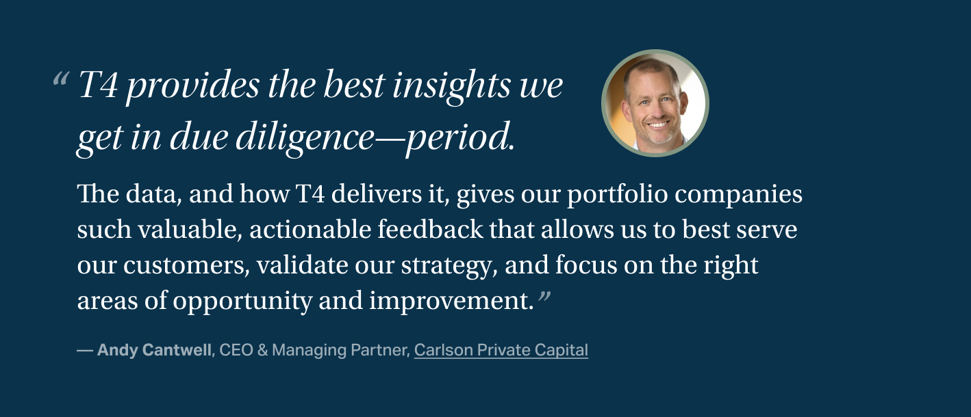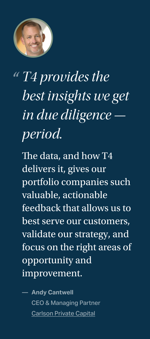T4 Associates provides data-driven customer insights that help private equity firms increase confidence, mitigate risk, validate strategy, and maximize portfolio value.